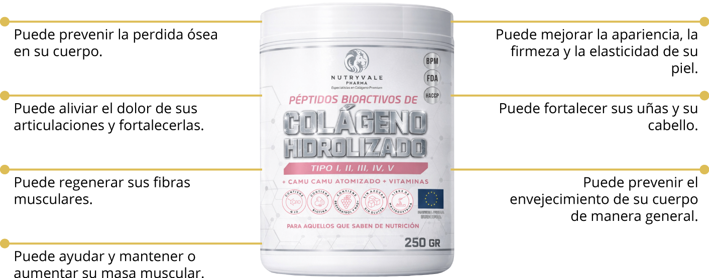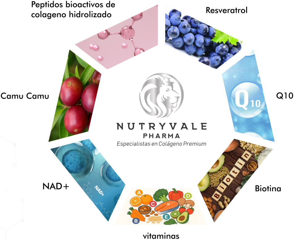 En Nutryvale Pharma, hemos evolucionado el concepto de suplementación. Colágeno White no es solo un producto de belleza; es una arquitectura biológica diseñada para proteger tu cuerpo en cada etapa de la vida. Gracias a nuestra tecnología de Péptidos Bioactivos, nutrimos tu organismo desde el interior para que tu plenitud se refleje en el exterior. Su fórmula avanzada con Resveratrol, NAD+, Coenzimas Q10 y vitaminas esenciales potencian la energía celular, ayuda a mantener articulaciones fuertes, piel firme y un bienestar que se siente día a día.